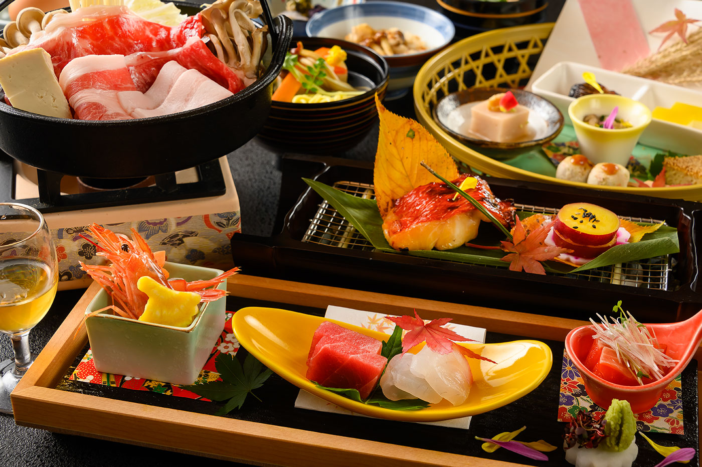 特製梅酒から始まり、華やかな前菜 郷土の味「おっきりこみうどん」など旬の香り高い会席料理をご用意いたします。一品一品こだわりのお料理をお楽しみください。