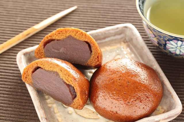 手ぬぐいが茶色に染まるほど鉄分の多かった伊香保温泉で、温泉の茶色い湯乃花をイメージして作ったのが温泉まんじゅうの始まりだそう。今は温泉まんじゅうのイメージとして当たり前な「茶色いまんじゅう」は、伊香保の泉質からきていたものなんです。