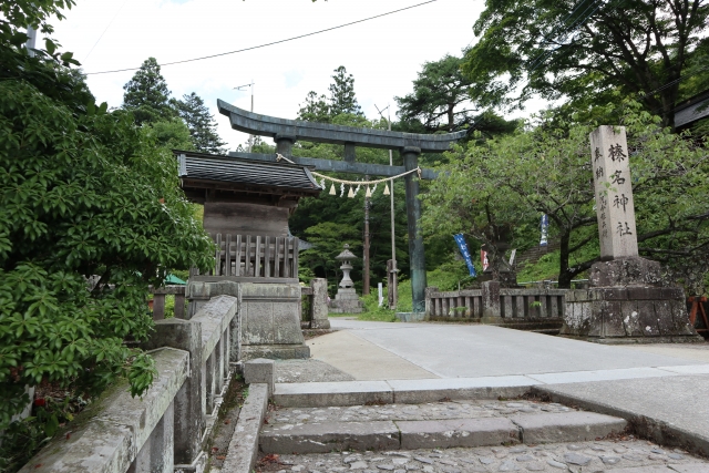 高崎市にある榛名神社は、主祭神として火の神である「火産霊神(ほむすびのかみ)」と、土の神である「埴山売神(はにやまひめのかみ)」を祀り、古くから鎮火、開運、五穀豊穣、商売繁盛のご利益があると言われています。 参道に立つ鳥居をくぐるとすぐに、目の前に重厚感のある門が現れます。