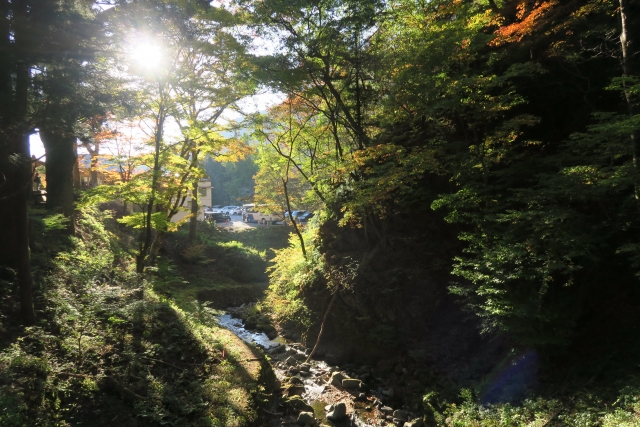 参道は多くの木々で囲まれており、沢を流れる水の音や緑鮮やかな木々たちの中、進んでいきます。