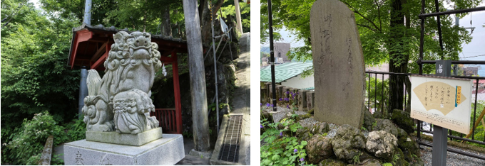 伊香保神社狛犬と万葉句碑 今日は、伊香保神社をそのまま通り、ロープウェイまでの散策ルートをご案内!
