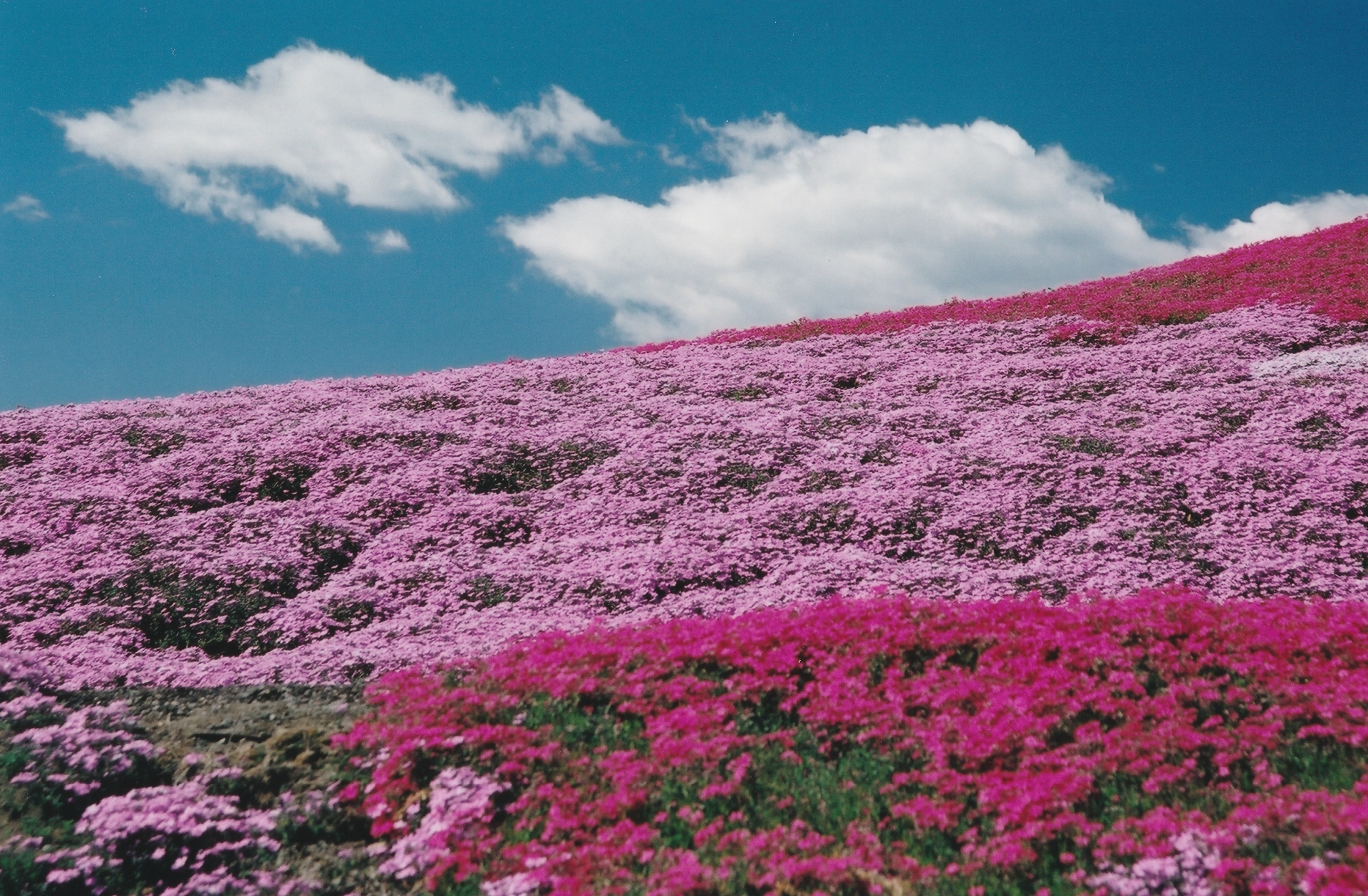 丘全体をおおいつくす色鮮やかな芝桜のジュウタンとほのかな香りをぜひお楽しみください。