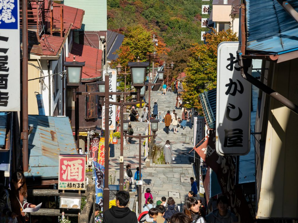 現在では365段もあるい石段の両脇には、風情豊かな構えのお店が軒を連ね、浴衣姿の人々も行き交っています。
