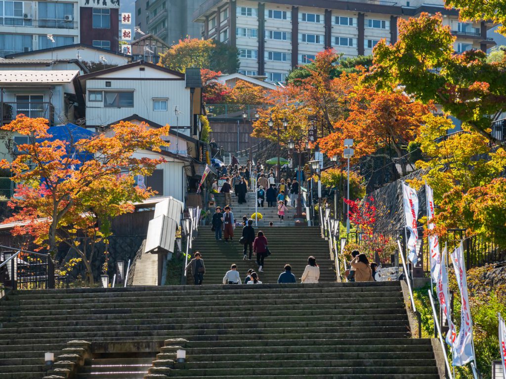 石段には約400年の歴史があり、その一部には、この地を愛したことで知られる歌人・与謝野晶子 の詩『伊香保の街』が彫り込まれています。 「365日にぎわってほしい」という願いが込められ、頂上の伊香保神社まで365段になっているのです。