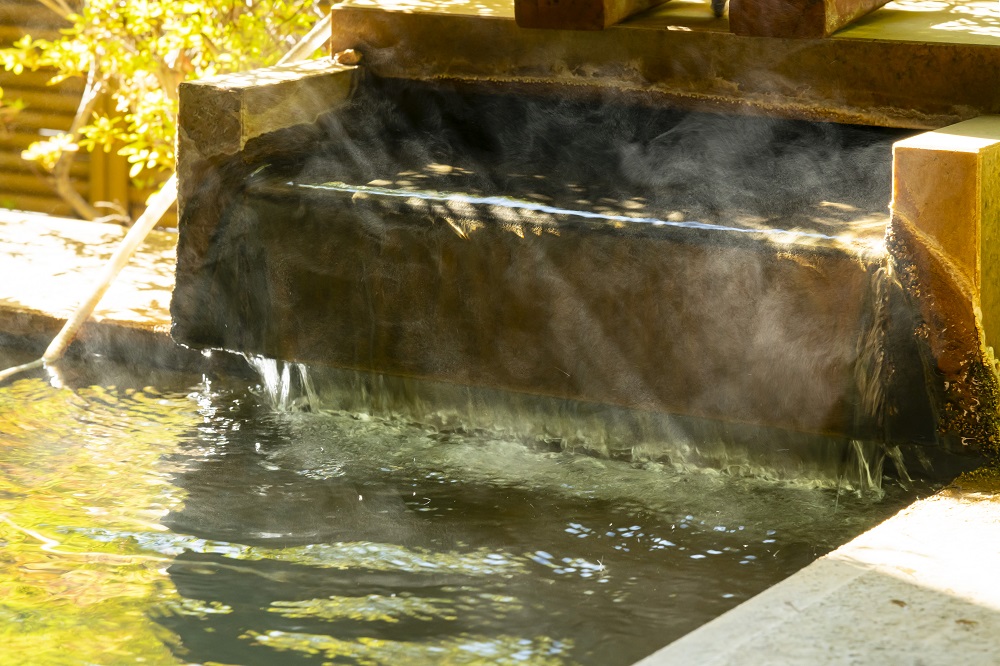 グループにも人気の大きな貸切マイナスイオン風呂「ゆらり」と源泉かけ流しの黄金の湯