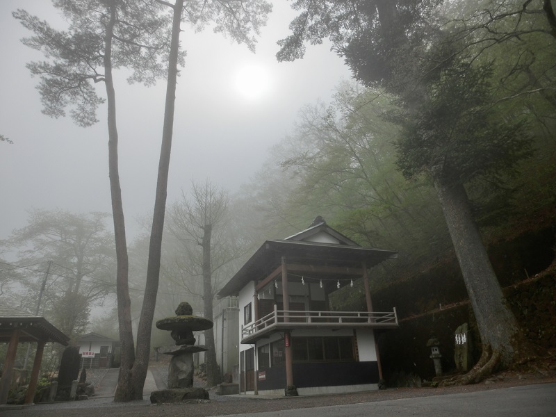 朝霧に包まれた幻想的な境内。