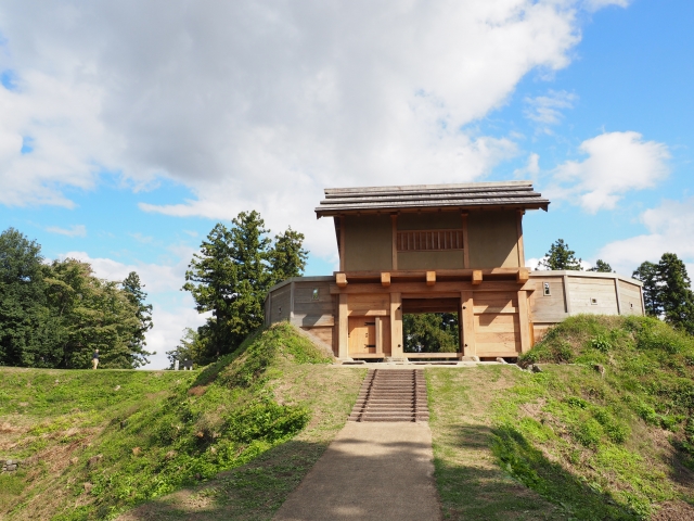 武器や食料の収蔵庫と敵の侵入を防ぐ防御施設を兼ねていた、とされています。県内に現存する唯一の城郭建築です。