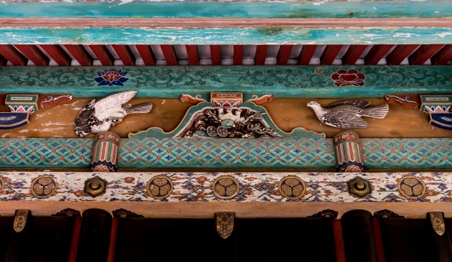 本殿彫刻、左甚五郎作・狩野探幽画伝「巣籠りの鷹」は有名です。