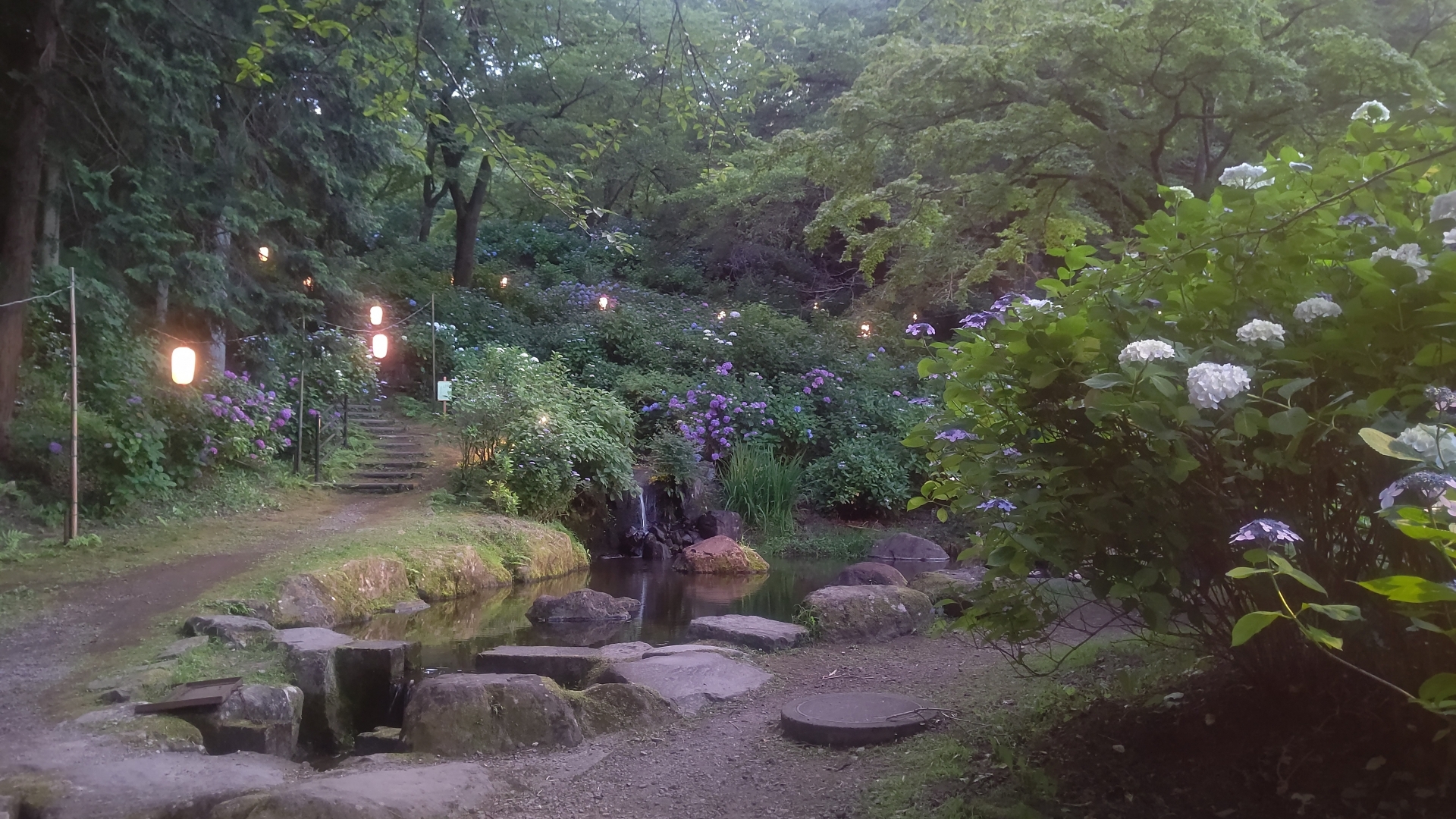 期間中は美しく多様な色彩の紫陽花が見られるほか、夜間には紫陽花のライトアップも行っています。