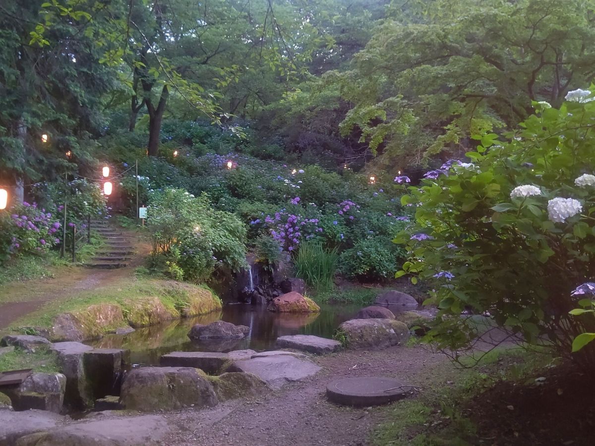 当宿からお車で13分のところにある公園。初夏になると散策路に約8000株の紫陽花が咲き誇ります。紫陽花の開花時期に合わせて例年「あじさい祭り」が開催され、夜間のライトアップなども行っています。