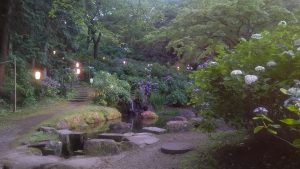 淡い色合いで幻想的に照らされる紫陽花は珍しく、