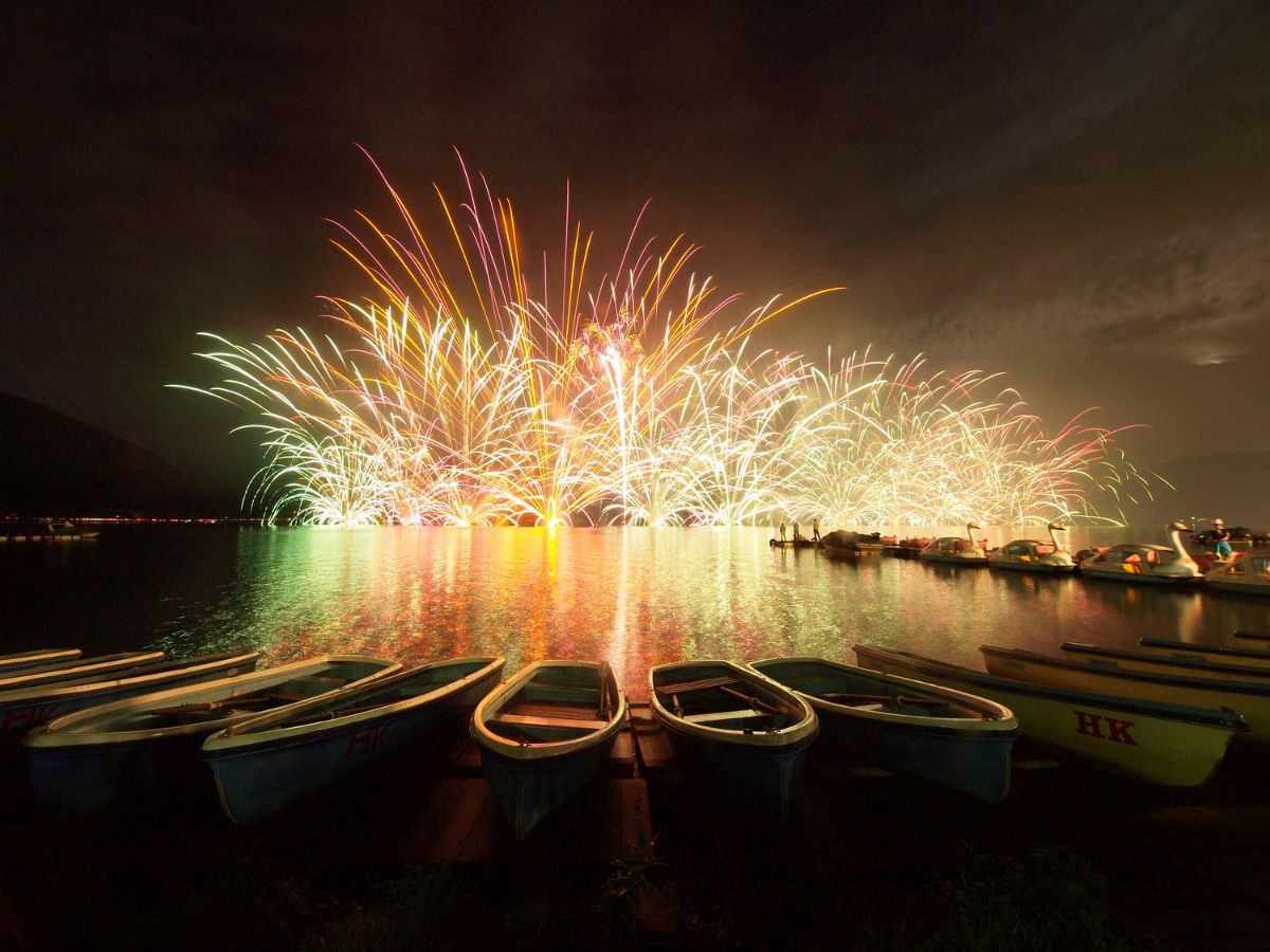 (日本語) 福一からのアクセスも良い群馬の定番スポット「榛名湖」にて毎年恒例の花火大会が今年も開催されます!ボートからの投げ込み花火と湖上からの打上花火の共演が美しく夏の夜空を彩ります。