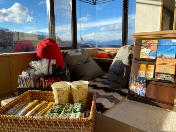 フリーのコーヒーマシンも設置しているので、自然豊かな伊香保の景色を臨みながら、ほっとひと息、休憩もして頂けます。
