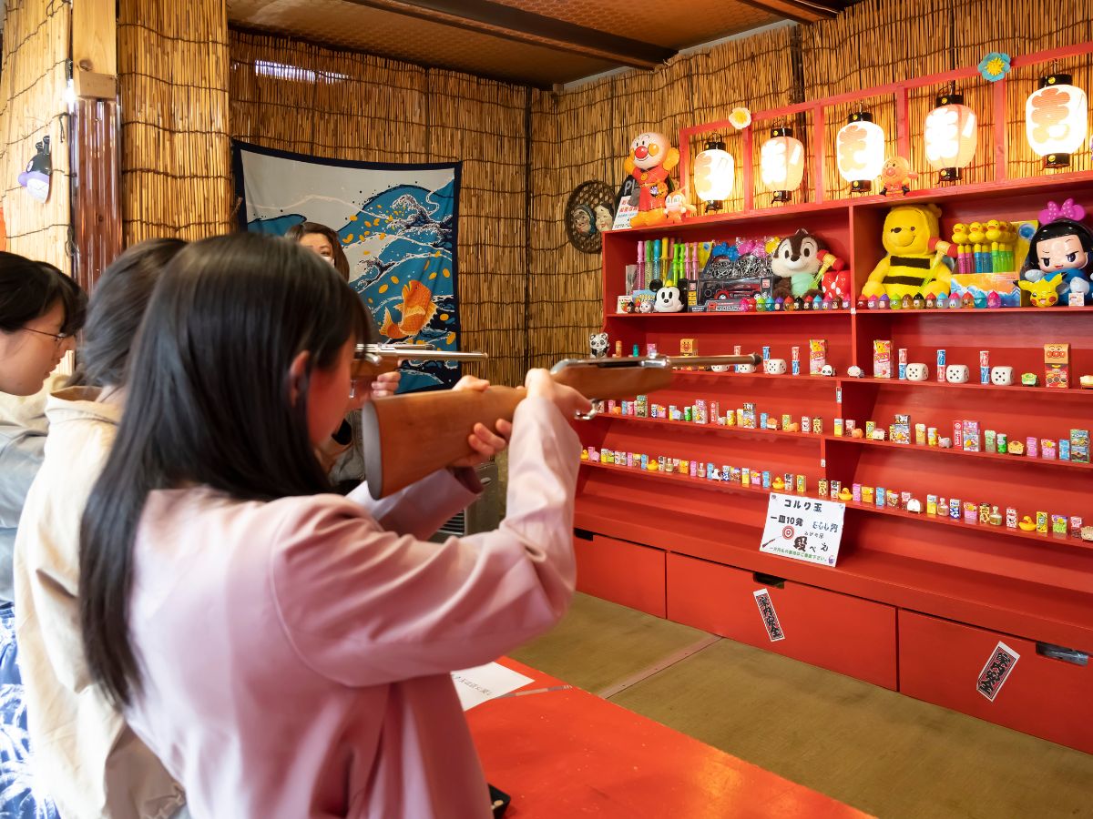 石段街166段目にある、縁日のようなにぎやかな遊技場。