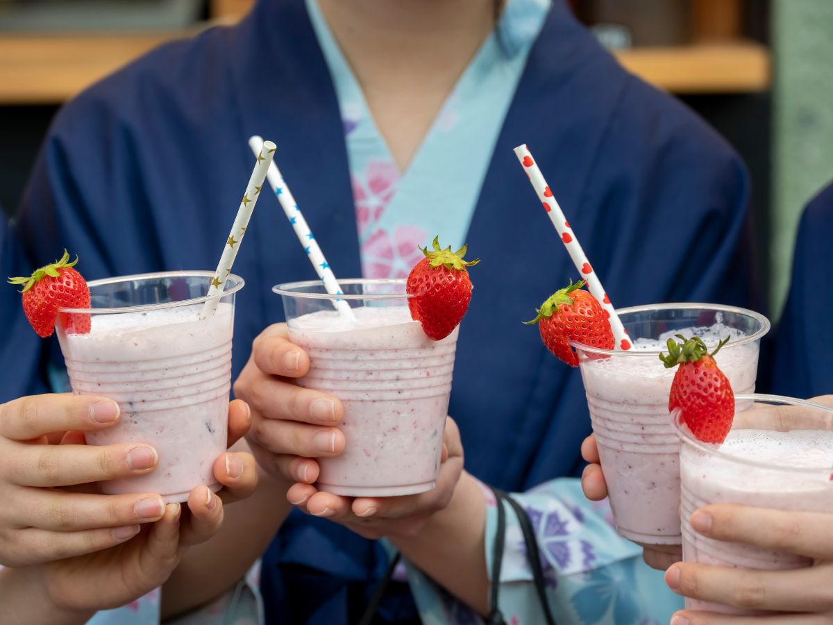 地元の苺と牛乳にこだわった、テイクアウト専門の可愛いジューススタンド。