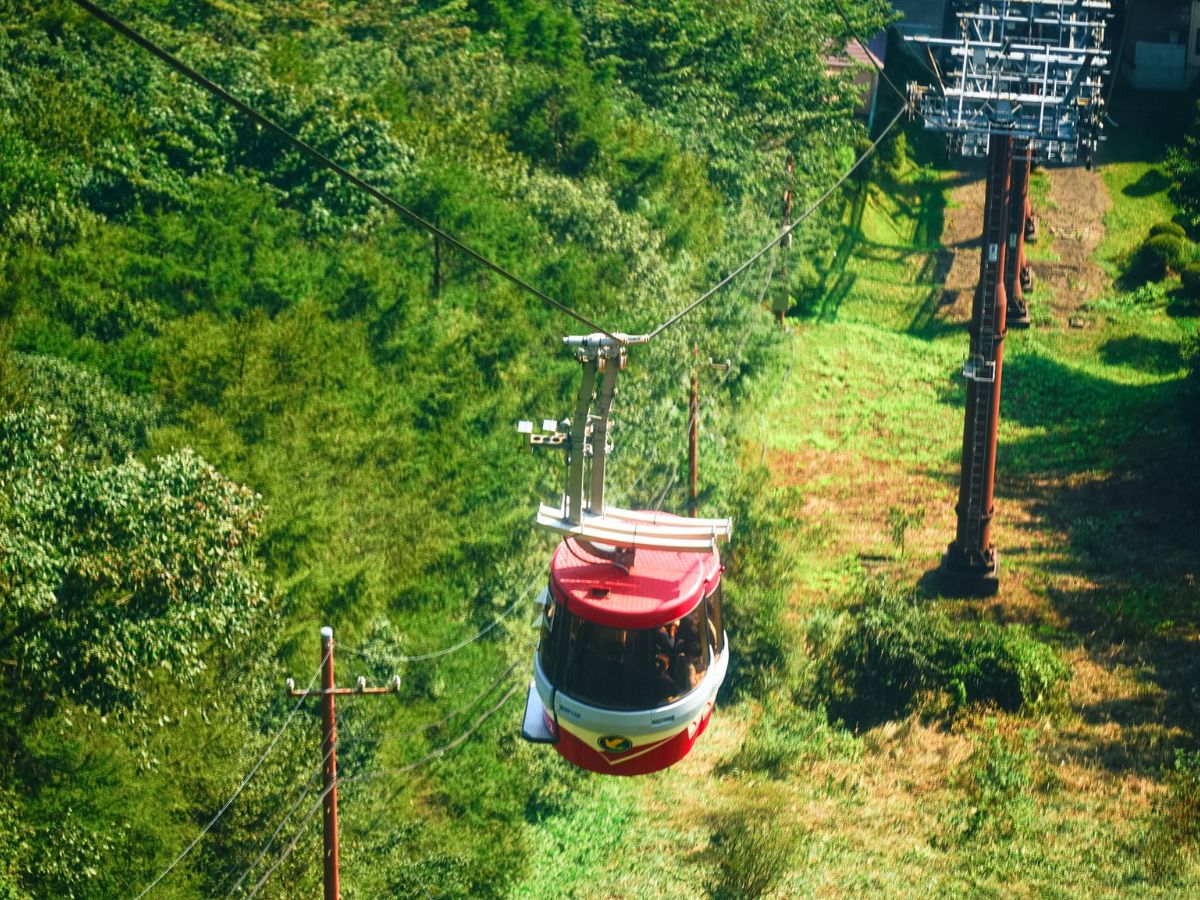 湖畔の高原駅から榛名富士山頂までつながっているロープウェイ。晴れている日には山頂から関東平野や上州の山々が一望できます。