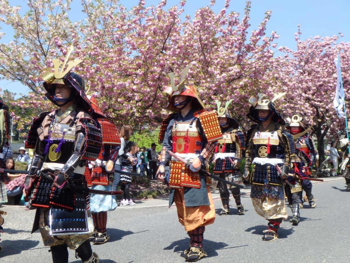 武者行列や、農産物・特産品を販売する六斎市、俳句大会などが行われます。